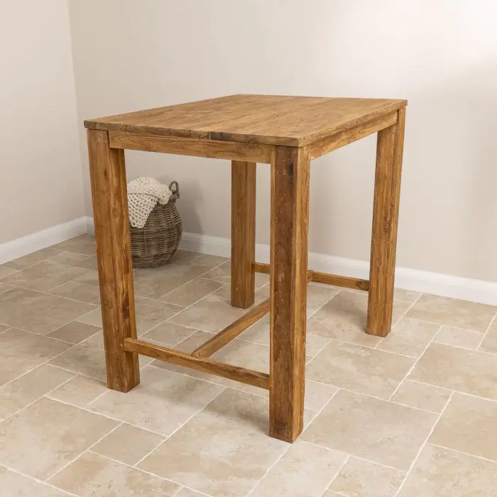 Our gorgeous farmhouse-style Reclaimed Teak Bar Table is a great addition to any dining area. Using sustainable timber sourced from old Colonial buildings, this piece is eco-friendly yet robust, strong and sturdy. This table can be used for commercial purposes in restaurants, cafes or bars. The natural grain of the wood is a strong feature of this table, providing a rustic and earthy feel. The table can also be purchased with the Natural Wicker Kubu Stools found in our Dining Chairs Section or as a set in our Dining Sets section.