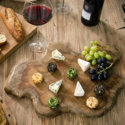 Circular Reclaimed Teak & Steel Serving Tray with Handles