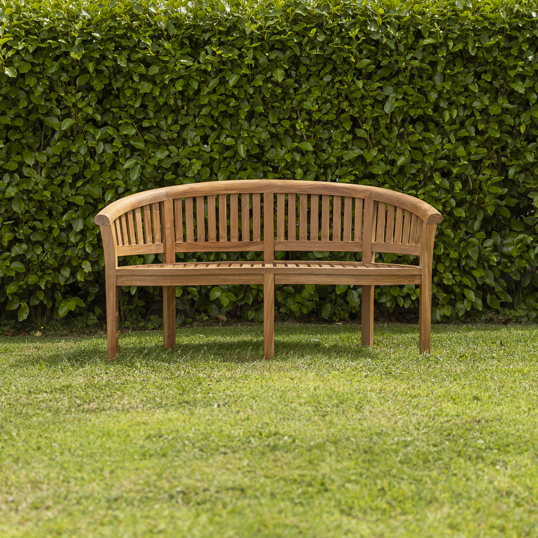 Certified Teak Outdoor Garden Bench with Curved Back Design