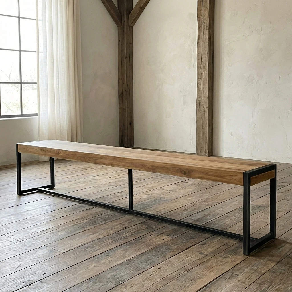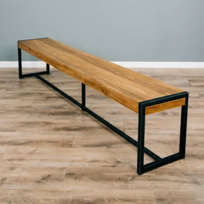300cm Rectangular Reclaimed Teak & Steel Indoor Dining Bench