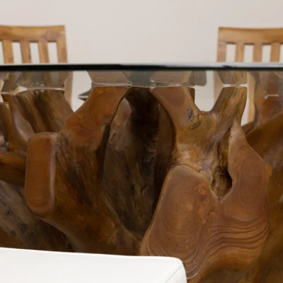 240cm Rectangular Teak Root Dining Table with 6 or 8 Upholstered Cove ChairsIn stock