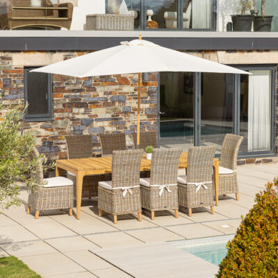 Invest in a beautiful 8-seat garden dining set today. If you need to accommodate larger groups, try our impressive 10 or 12-seater alternatives.