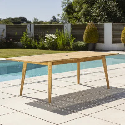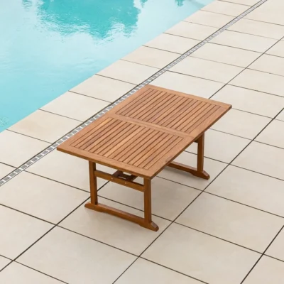 180cm - 240cm Certified Teak Outdoor Rectangular Extending Dining Table with Butterfly Folding LeafIn stock