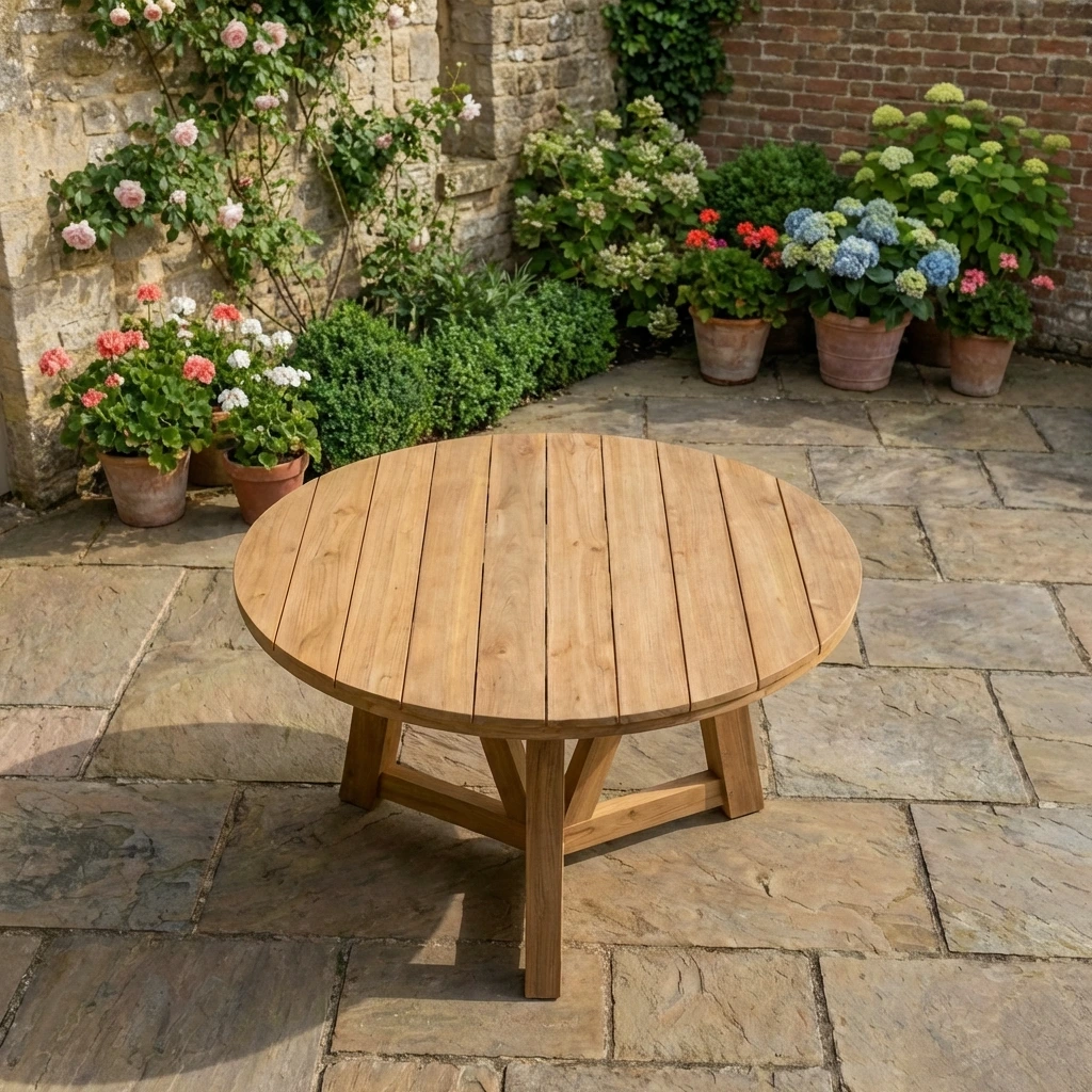 140cm Circular Natural Reclaimed Teak Outdoor V-Leg Dining Table