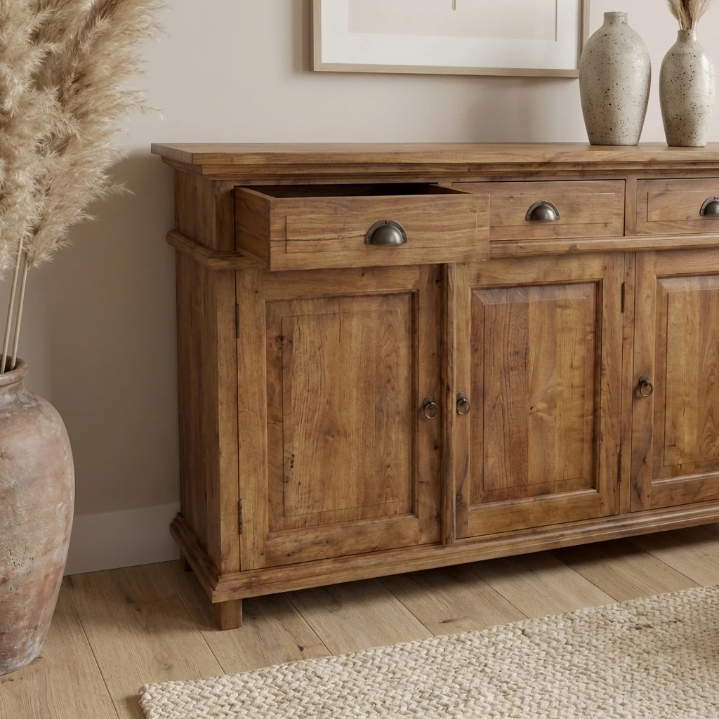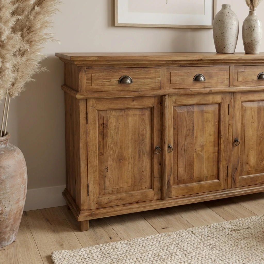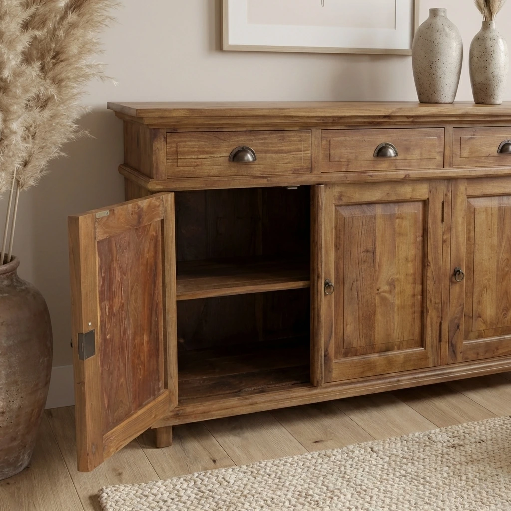 The Brisa 3 Door Sideboard combines generous storage with the organic beauty of reclaimed teak. Three cupboards and three drawers make organisation effortless, while the rustic finish adds natural depth to any room. A versatile, durable addition ideal for modern, coastal, or traditional interiors.