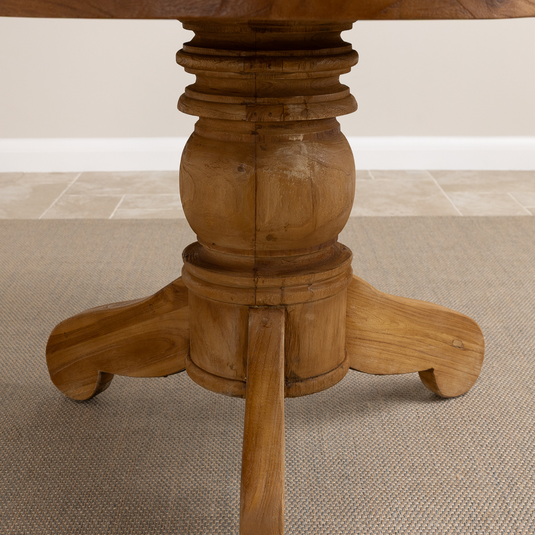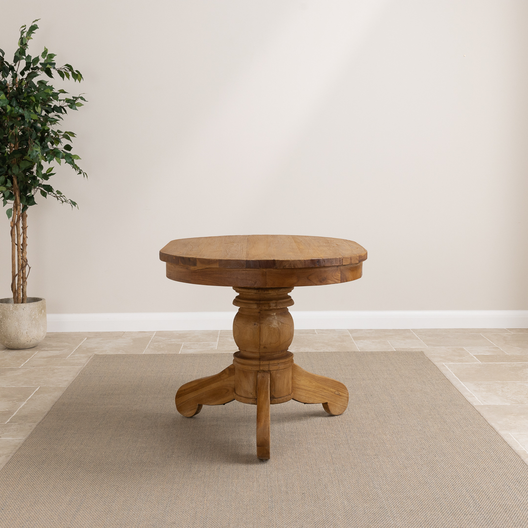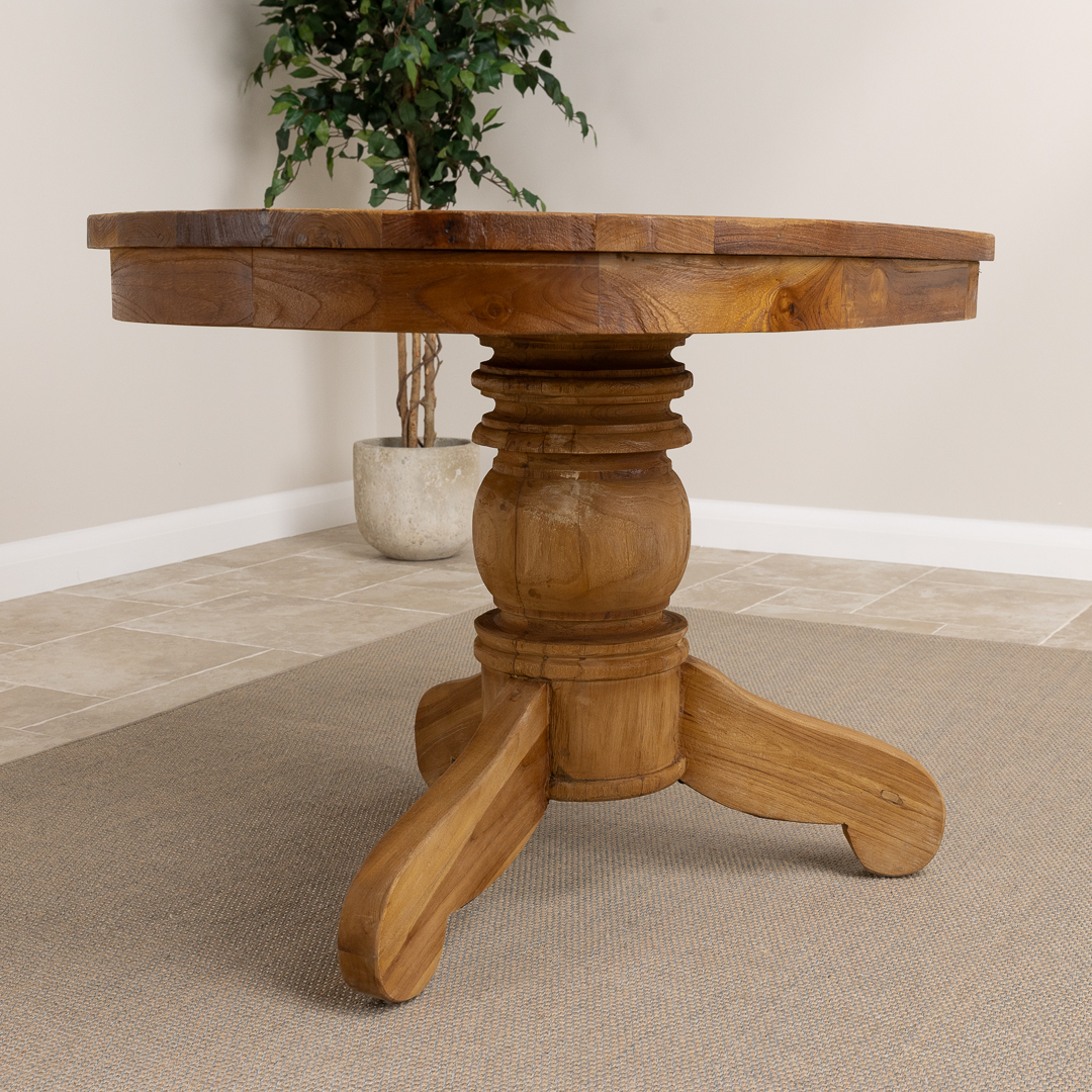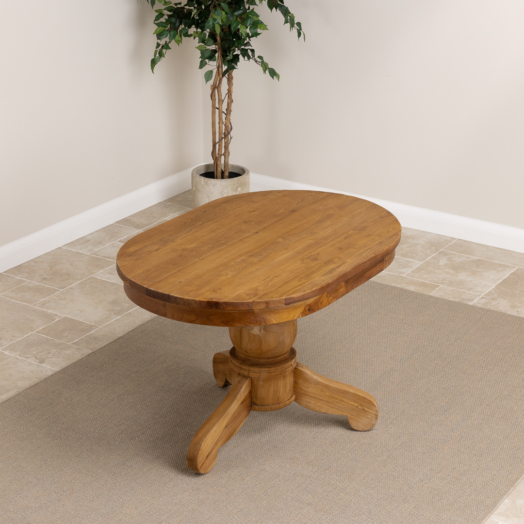 120cm Oval Rustic Reclaimed Teak Pedestal Indoor Dining Table