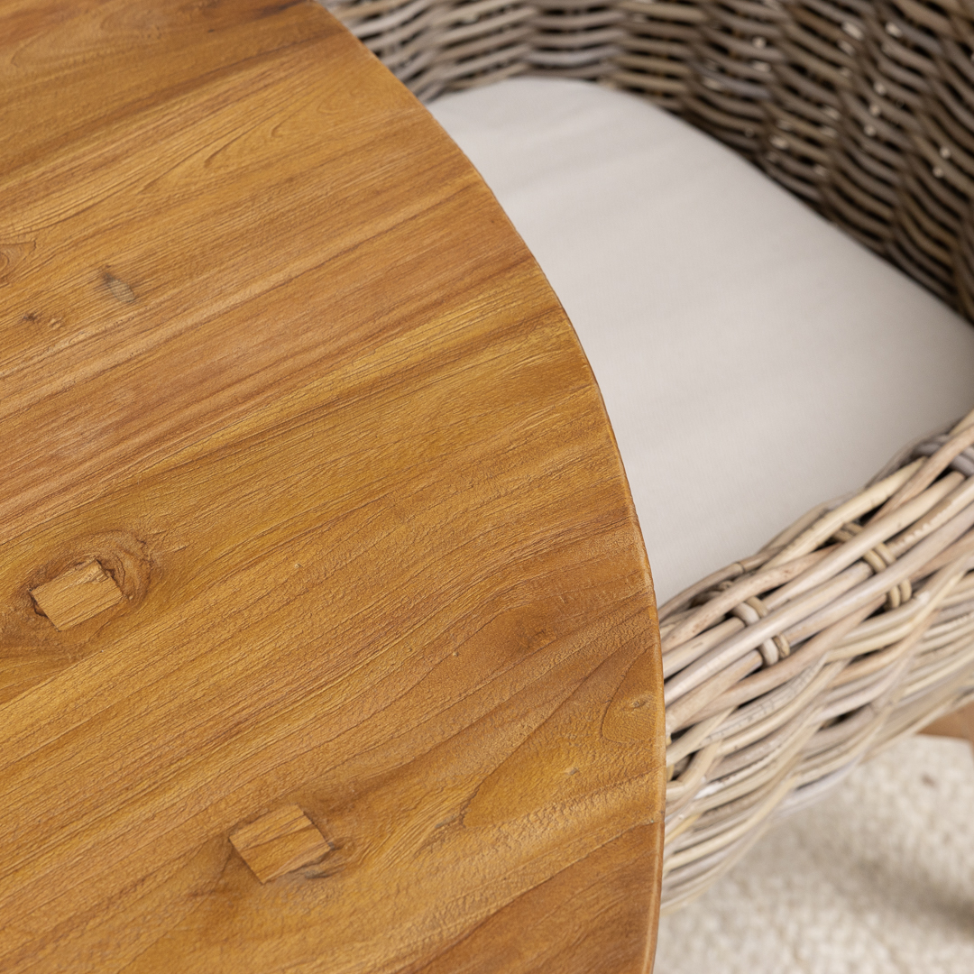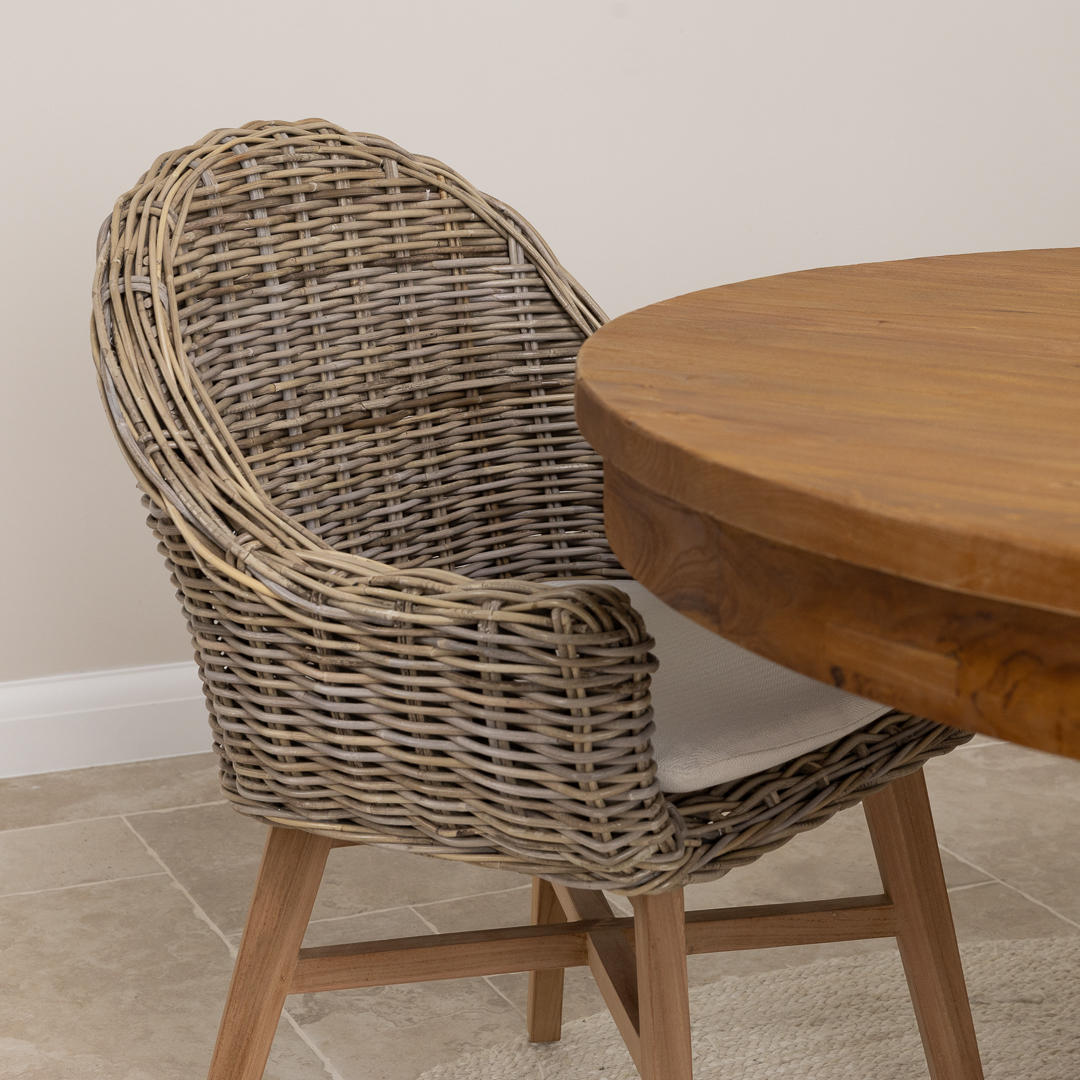 Reclaimed Teak & Natural Kubu Wicker Scandi Dining ArmchairIn stock