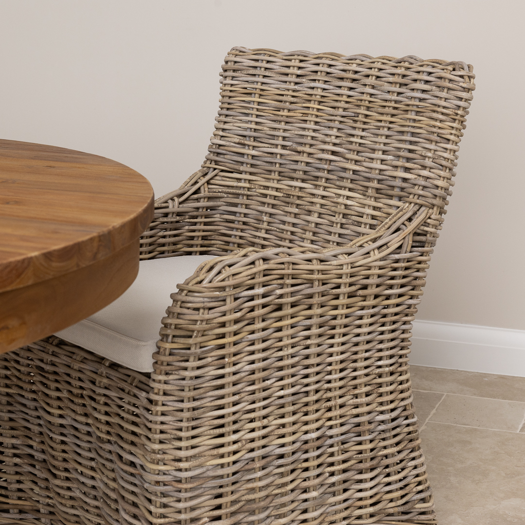 Reclaimed Teak & Natural Kubu Wicker Scandi Dining ArmchairIn stock