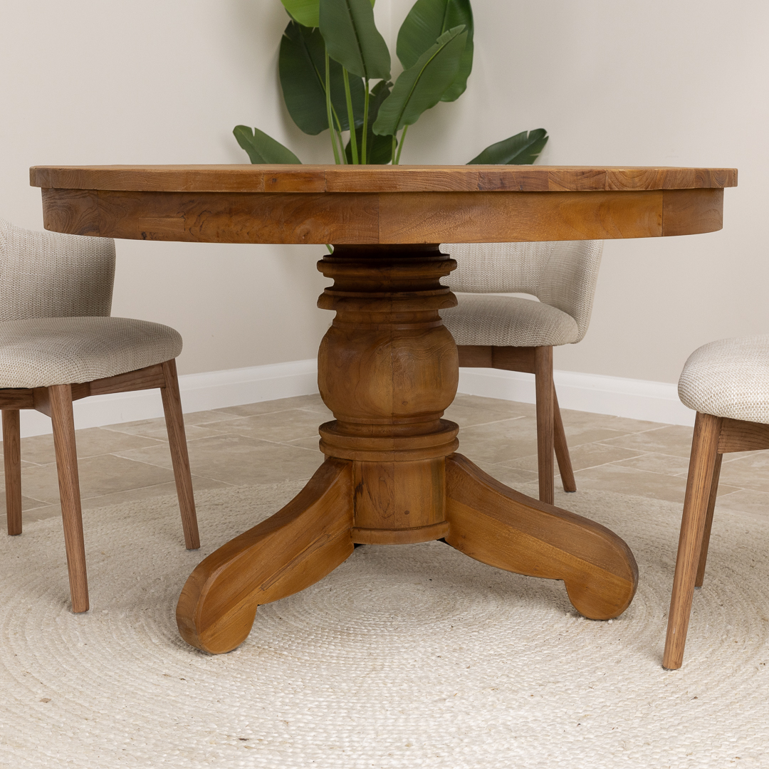 120cm Circular Rustic Reclaimed Teak Pedestal Indoor Dining TableIn stock