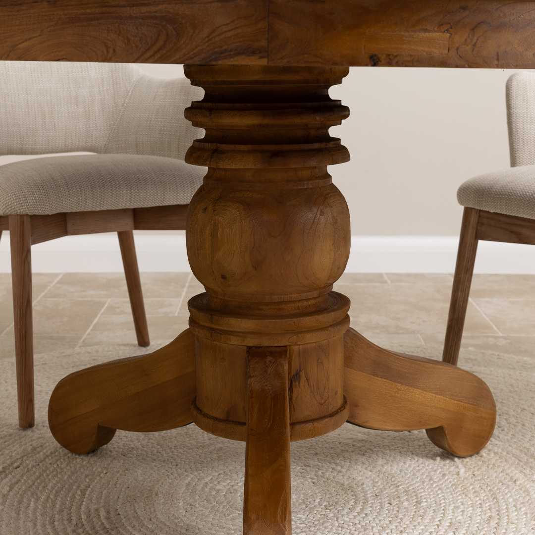 150cm Circular Rustic Reclaimed Teak Pedestal Indoor Dining TableIn stock
