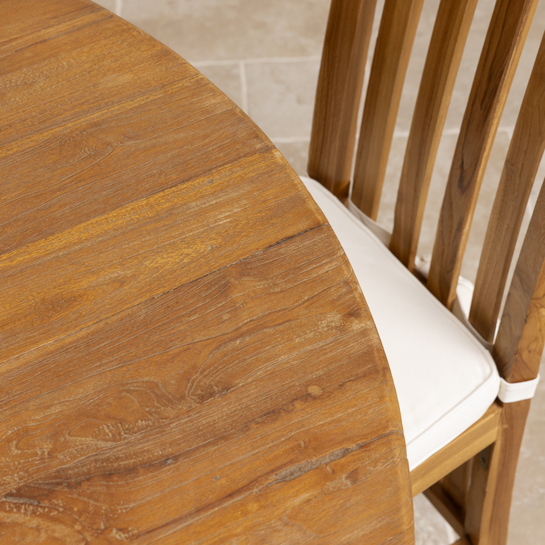 Reclaimed teak is environmentally friendly and durable, but regular maintenance helps keep it looking its best.
