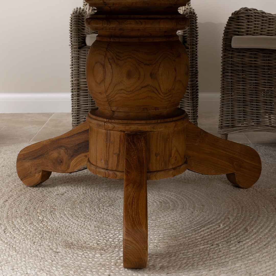 120cm Circular Rustic Reclaimed Teak Pedestal Indoor Dining TableIn stock