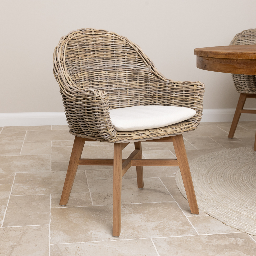 Natural Kubu Wicker Indoor/Outdoor High Backed Dining Chair with Natural Linen CushionIn stock