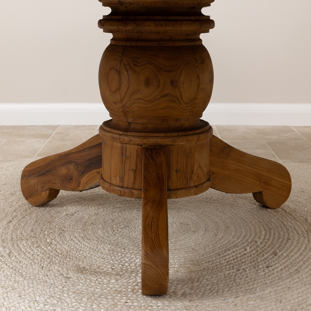 120cm Circular Rustic Reclaimed Teak Pedestal Indoor Dining TableIn stock