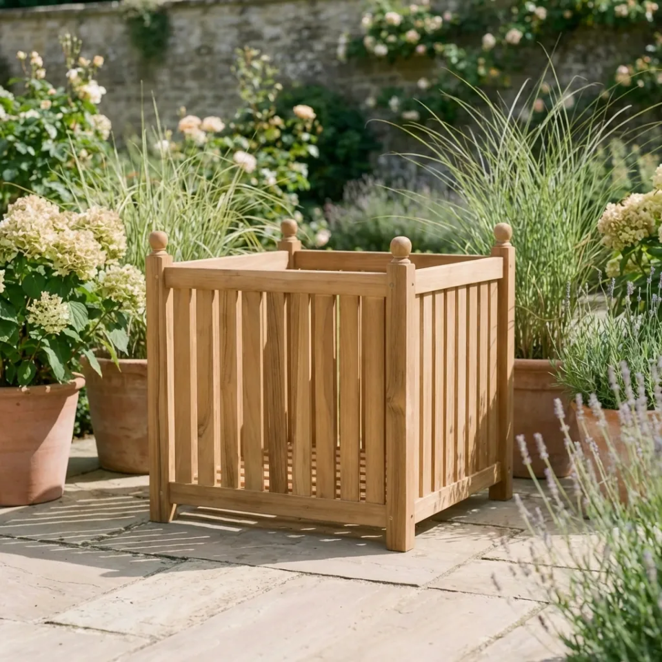 45cm Certified Teak Outdoor Square PlanterIn stock