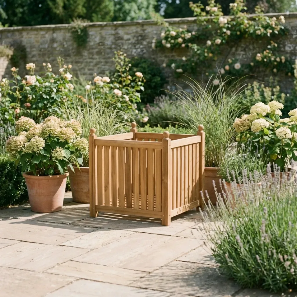 60cm Certified Teak Outdoor Square PlanterIn stock