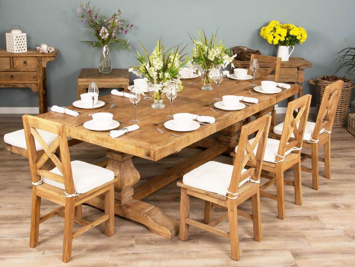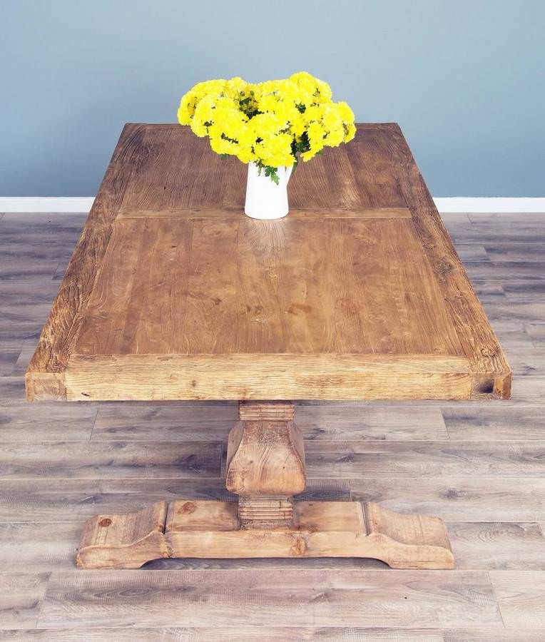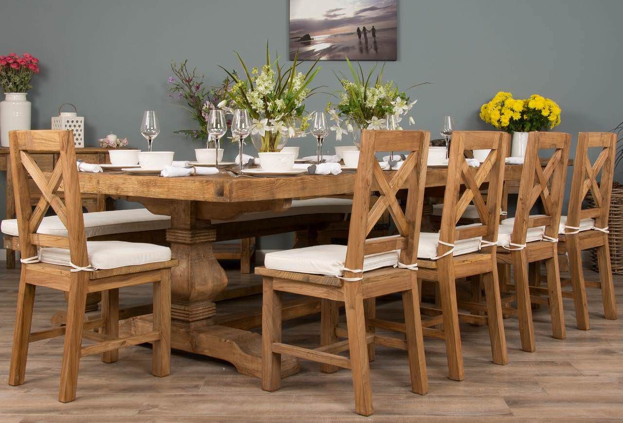 240cm Rectangular Reclaimed Elm Pedestal Indoor Dining Table with Elm Bench & 3 or 5 Etana Chairs