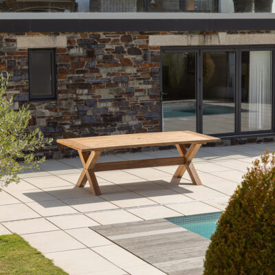 240cm Rectangular Natural Reclaimed Teak Outdoor Cross Leg Dining TableIn stock