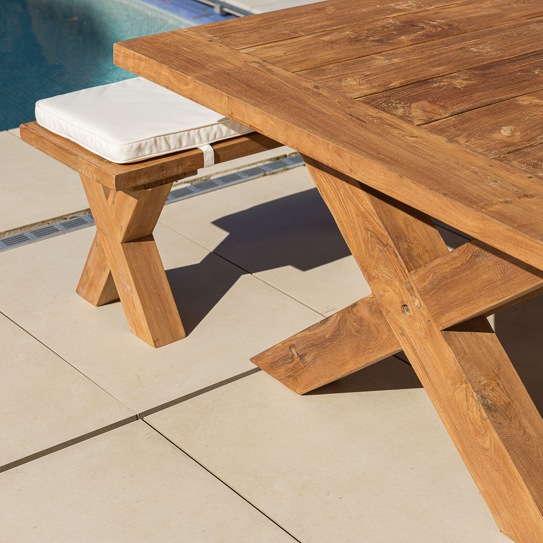 240cm Rectangular Natural Reclaimed Teak Outdoor Cross Leg Dining BenchIn stock