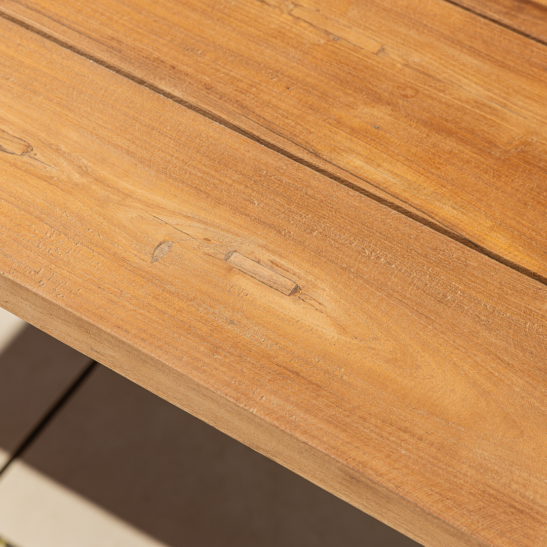 Reclaimed teak is highly durable but requires some ongoing maintenance for optimal appearance.