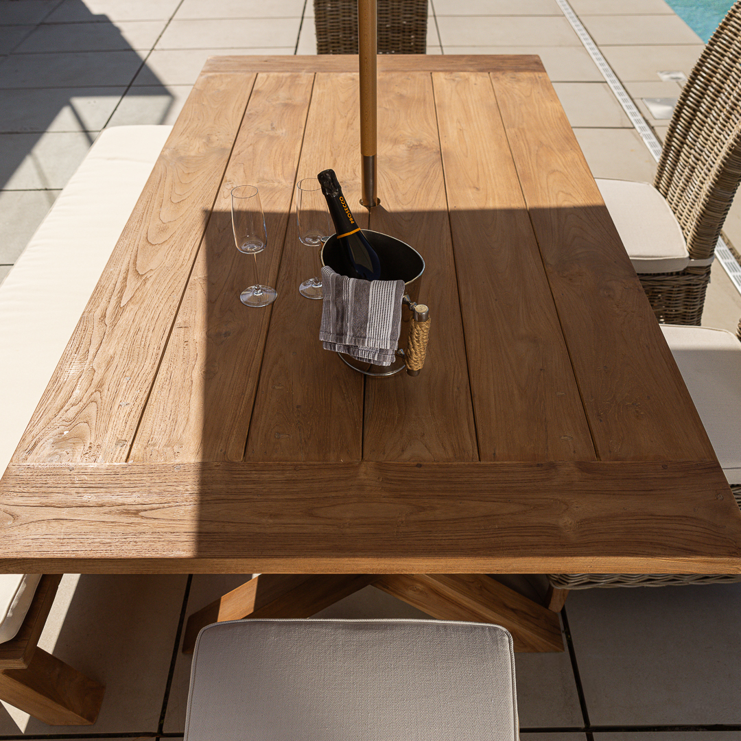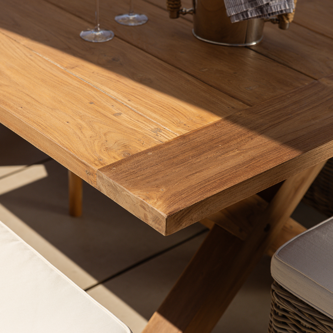 200cm Rectangular Natural Reclaimed Teak Outdoor Cross Leg Dining TableIn stock
