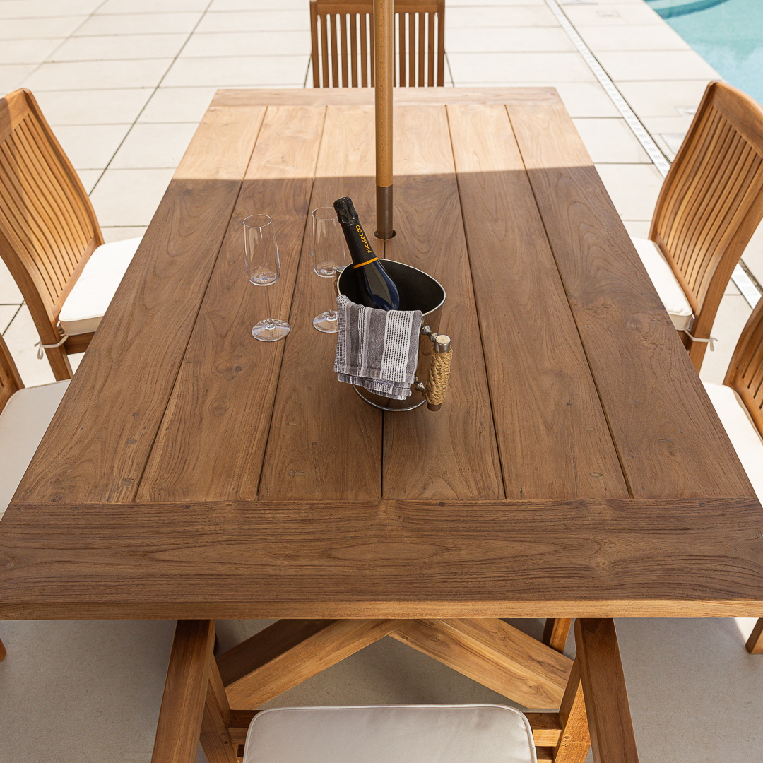 240cm Rectangular Natural Reclaimed Teak Outdoor Cross Leg Dining TableIn stock