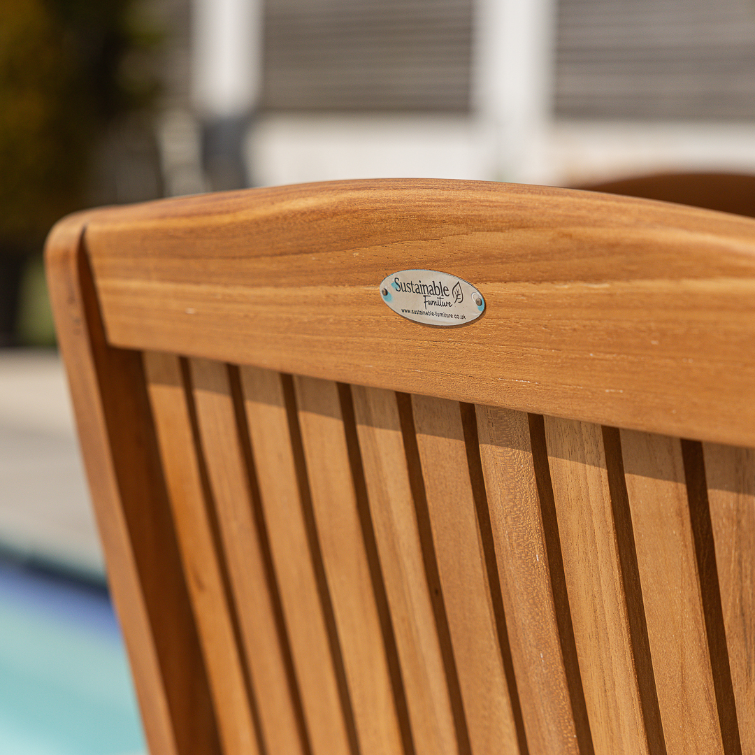 160cm Rectangular Natural Reclaimed Teak Straight Leg Outdoor Dining Table with 4 or 6 Marley Teak Stacking ChairsIn stock
