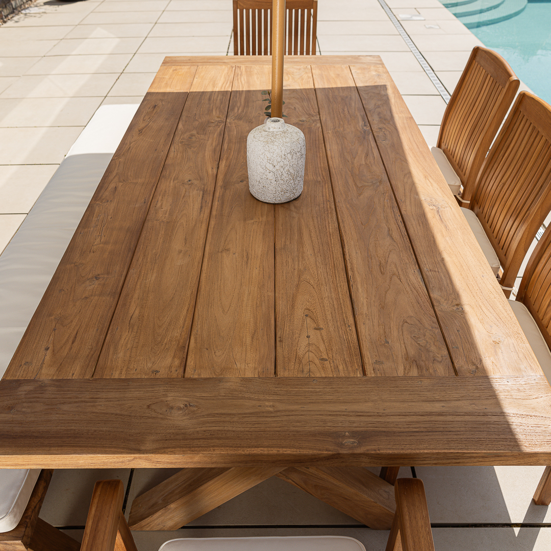 200cm Rectangular Natural Reclaimed Teak Outdoor Cross Leg Dining TableIn stock
