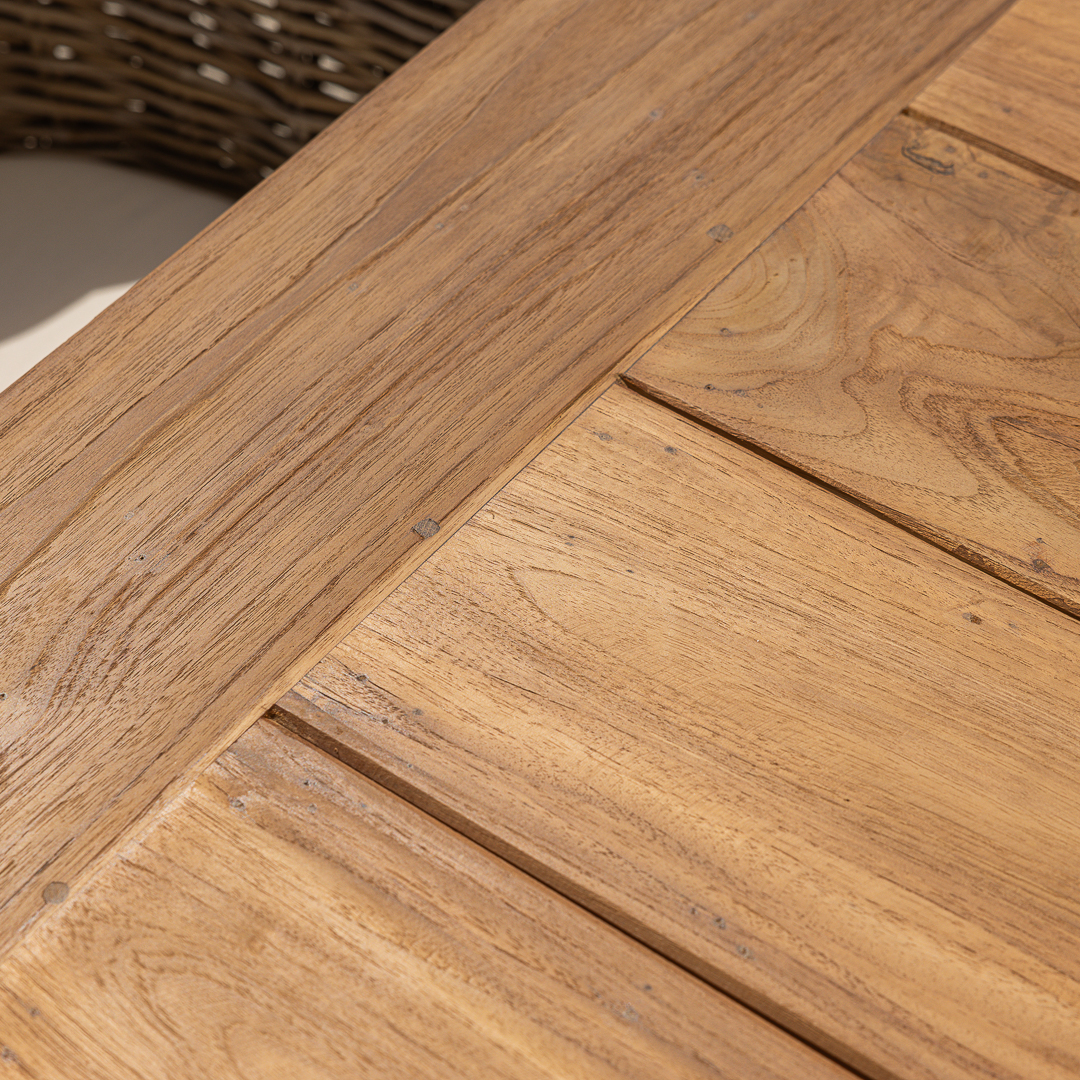 200cm Rectangular Natural Reclaimed Teak Straight Leg Outdoor Dining Table with 4 or 6 Natural Kubu Wicker ChairsIn stock