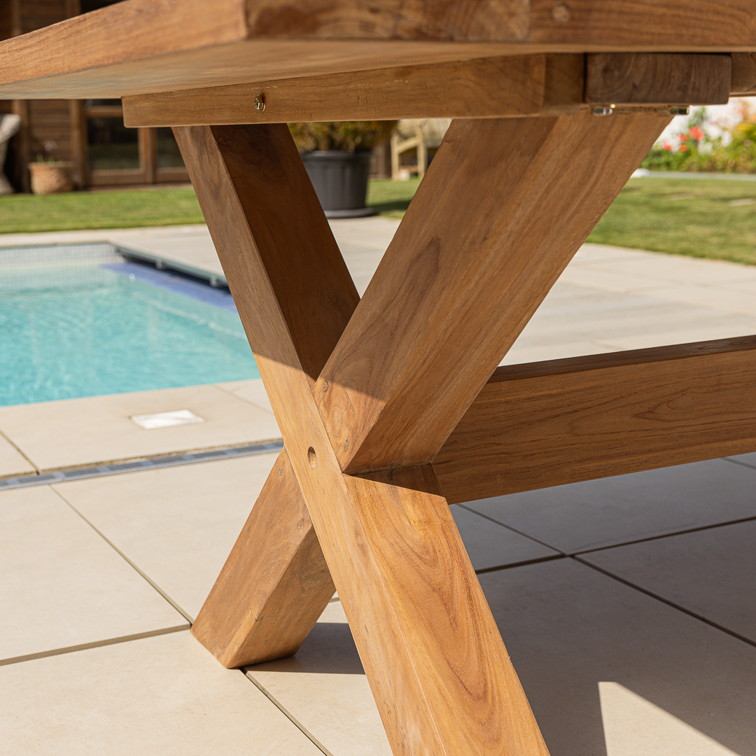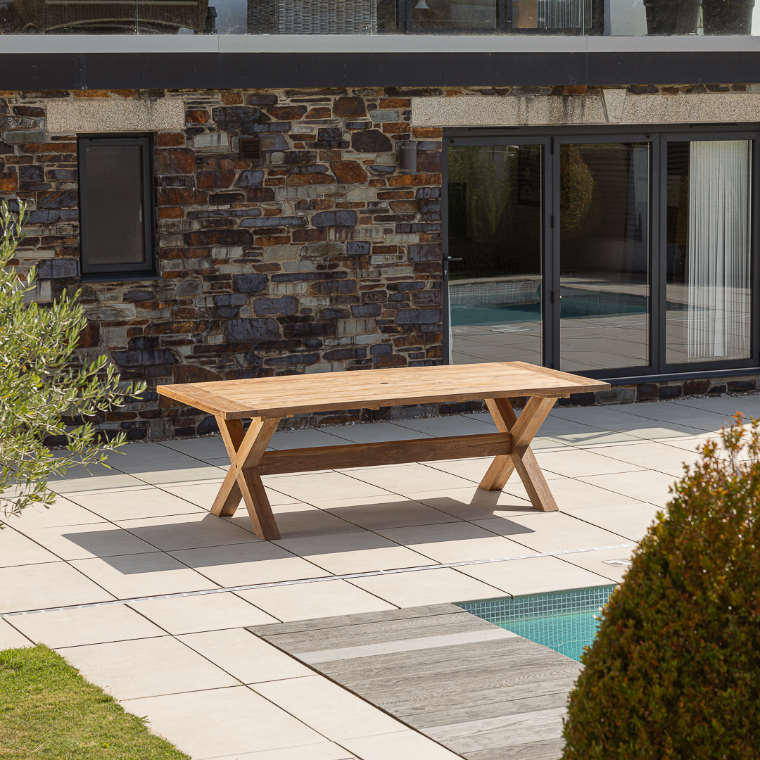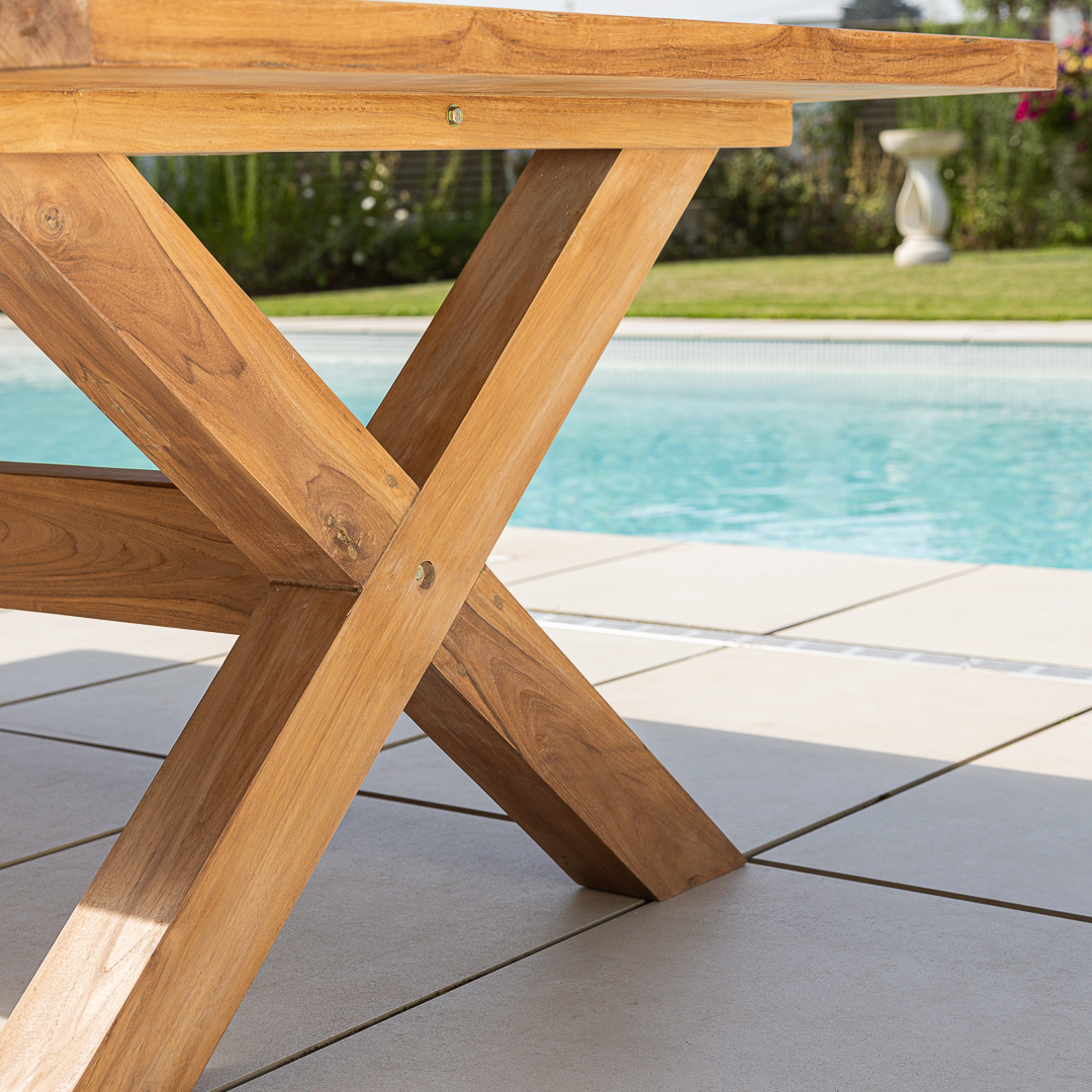 240cm Rectangular Natural Reclaimed Teak Outdoor Cross Leg Dining Table