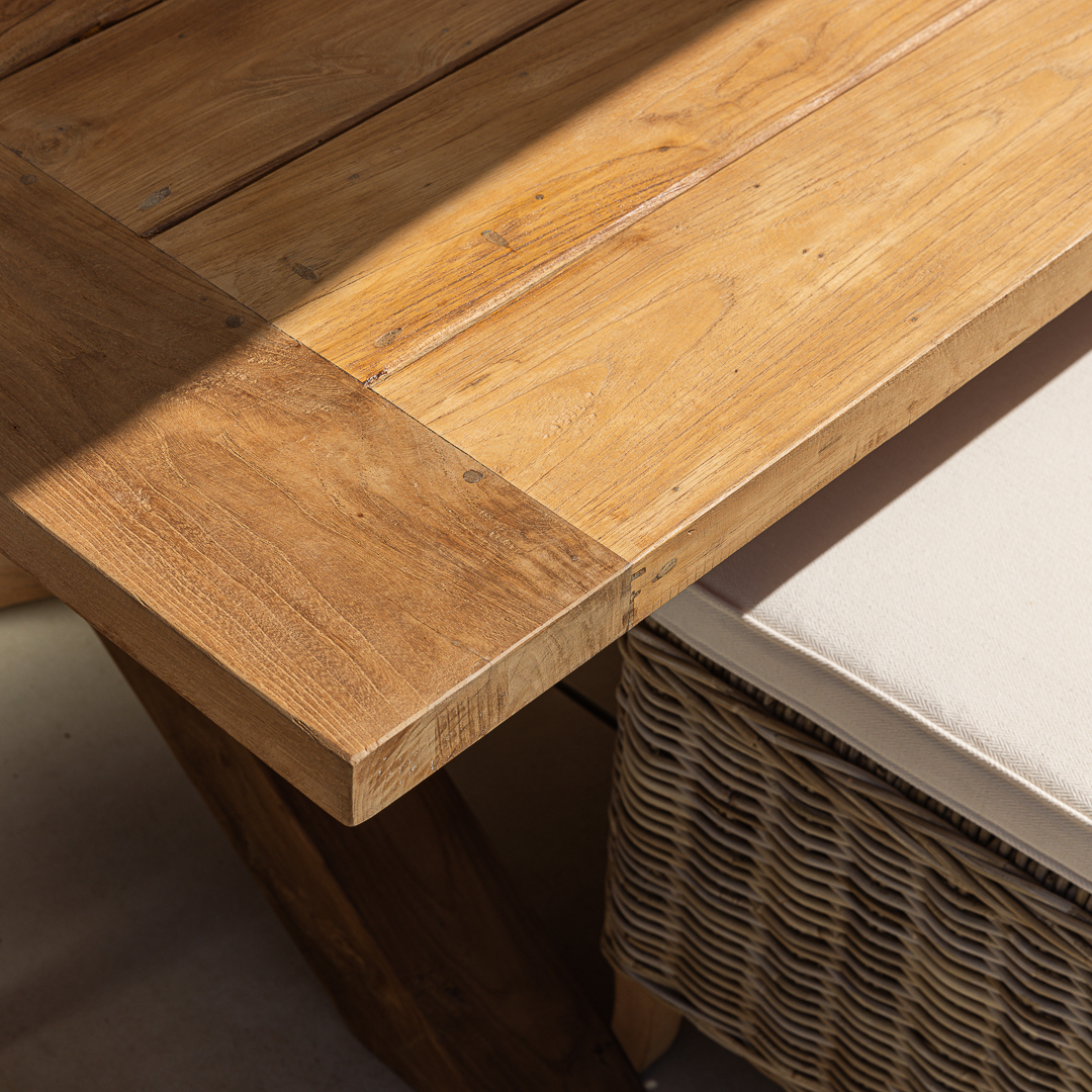 200cm Rectangular Natural Reclaimed Teak Outdoor Cross Leg Dining TableIn stock
