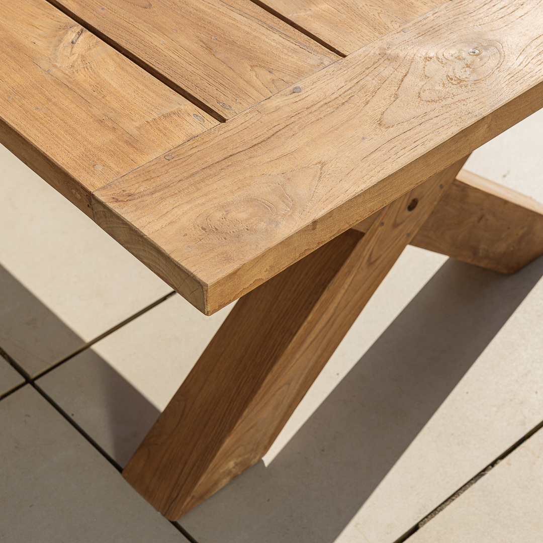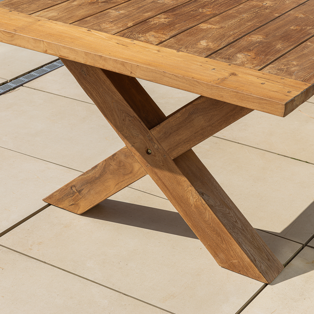 200cm Rectangular Natural Reclaimed Teak Outdoor Cross Leg Dining TableIn stock
