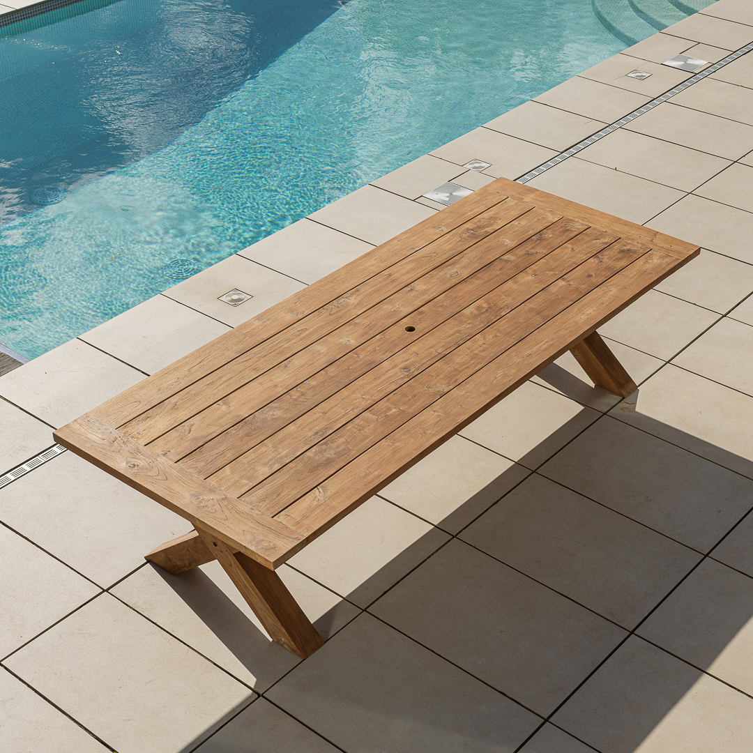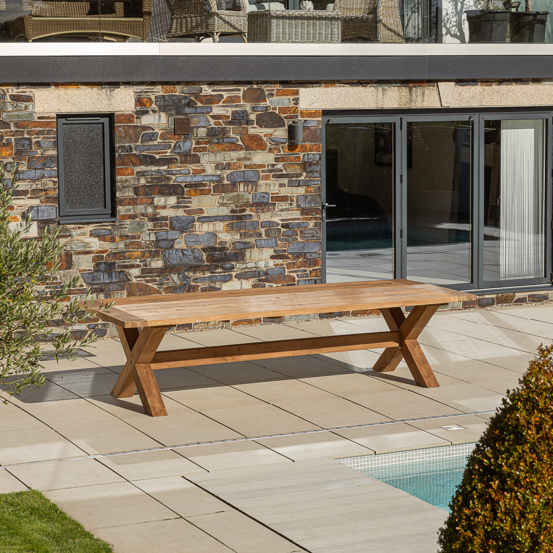 300cm Rectangular Natural Reclaimed Teak Outdoor Cross Leg Dining Table