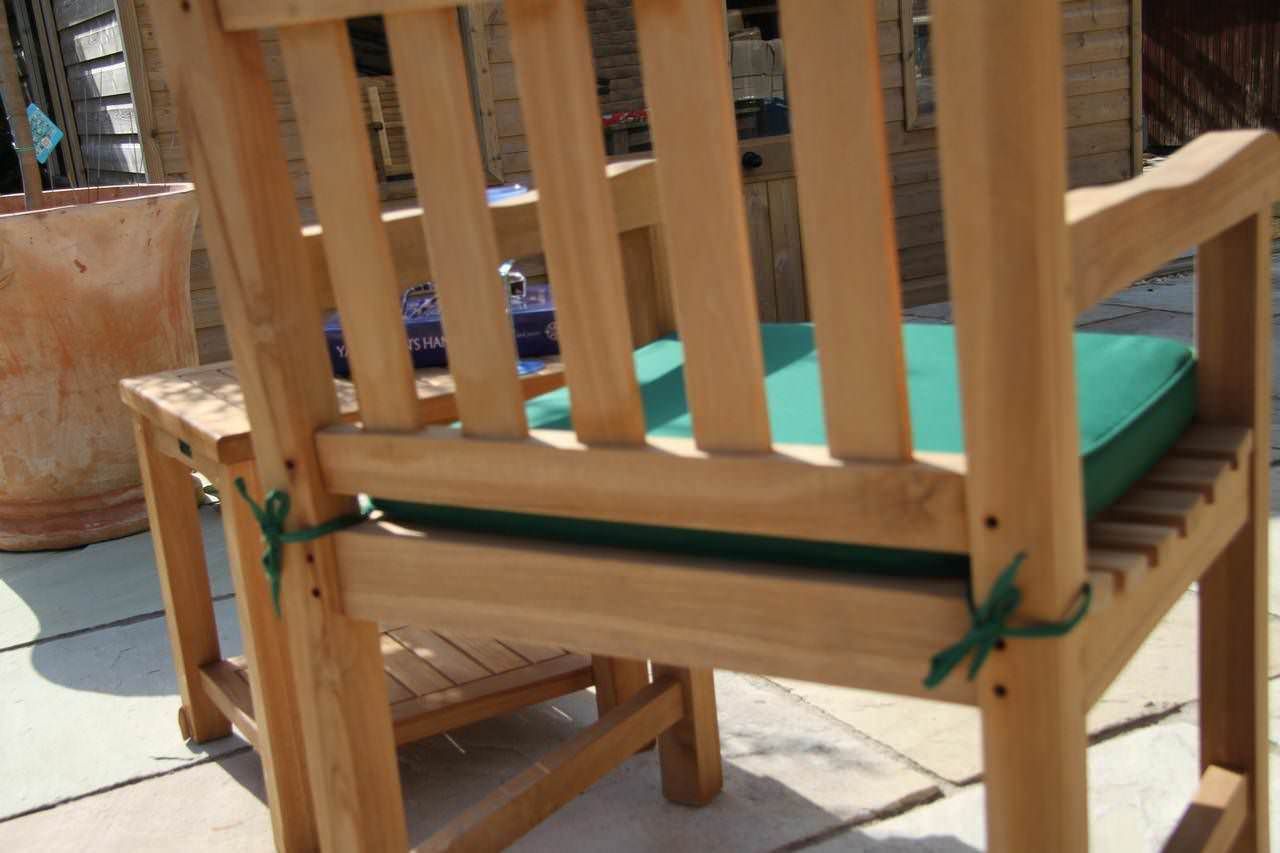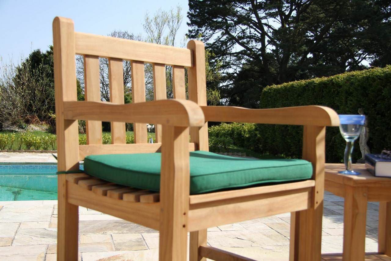 Two Certified Teak Outdoor Folding Dining Armchairs with Free CushionsIn stock