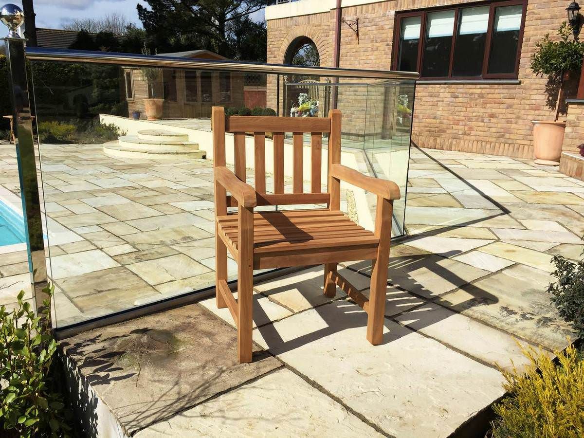 Certified Teak Outdoor Garden Armchair with Tradition Scroll DesignIn stock
