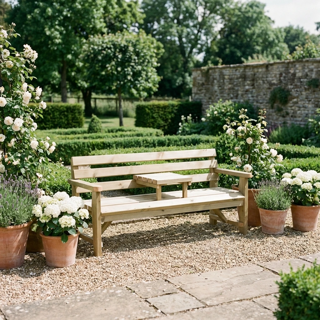 The Fowey Garden Drinks Bench features a traditional redwood bench design with an integrated drinks table for added convenience. Crafted from tanalised FSC Certified Swedish Redwood, it offers comfort, practicality, and durability. Perfect for relaxing with refreshments in any garden.