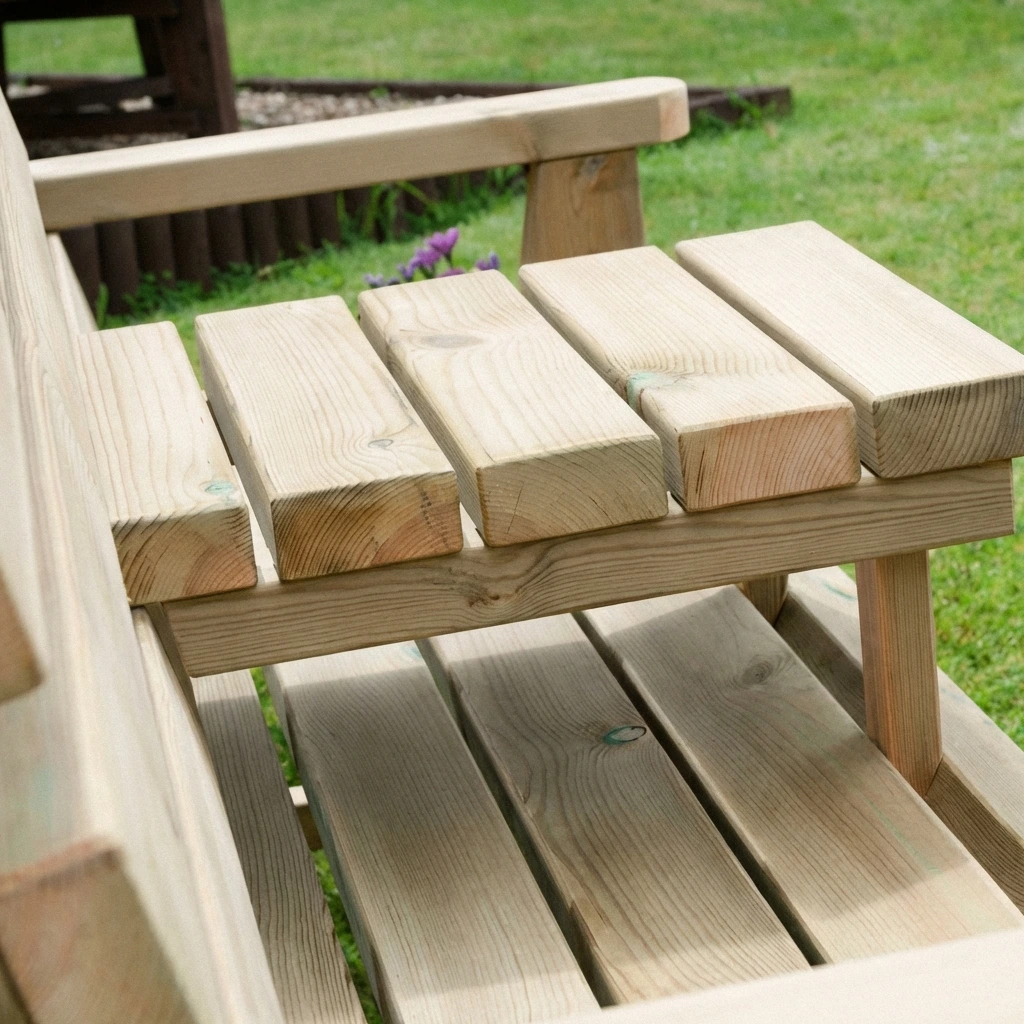 Tanalised FSC Certified Swedish Redwood Garden Bench with Drinks Table