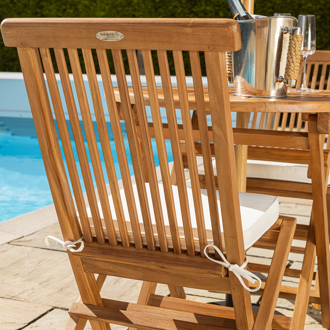 120cm Circular Certified Teak Folding Outdoor Dining Table with 6 Cora Folding ChairsIn stock