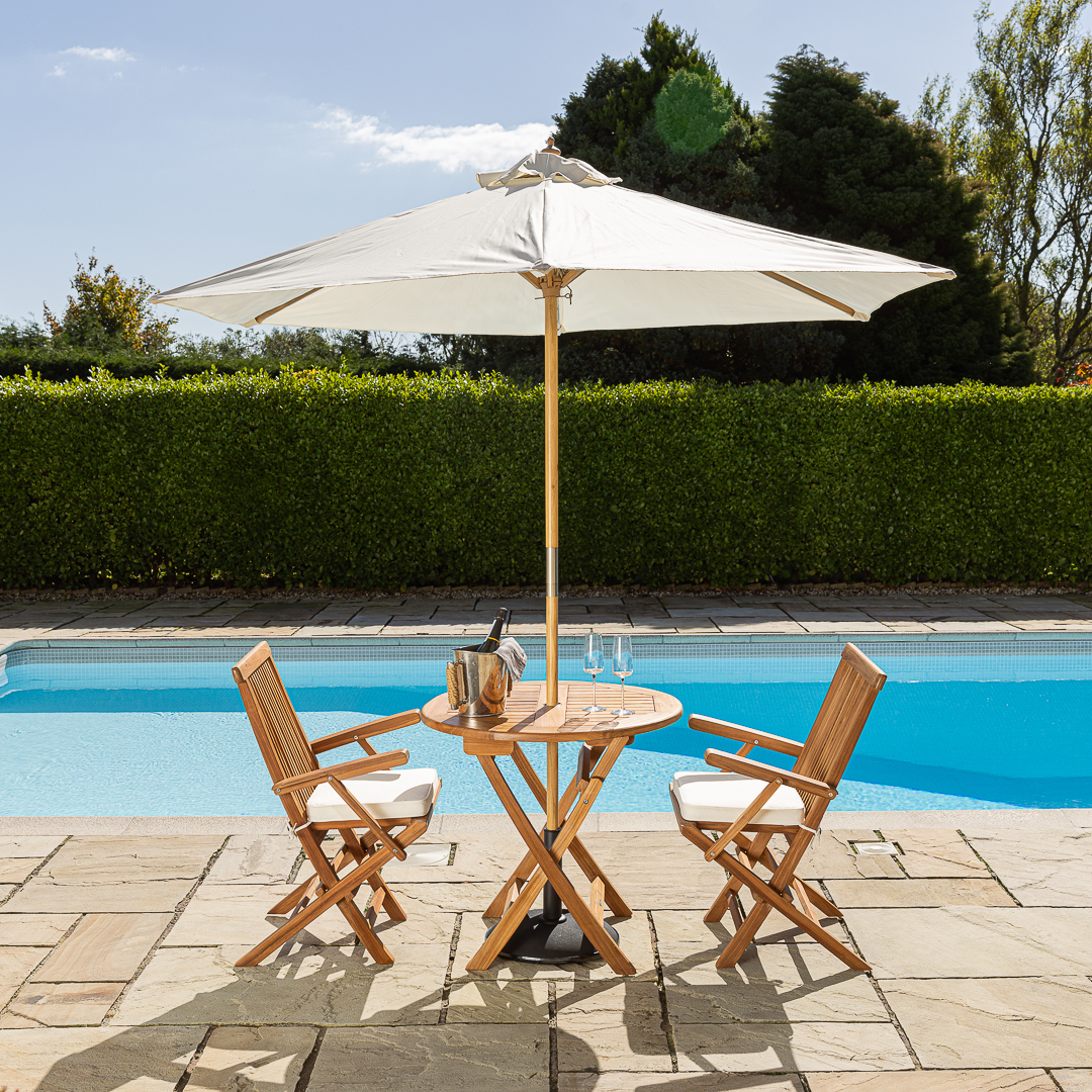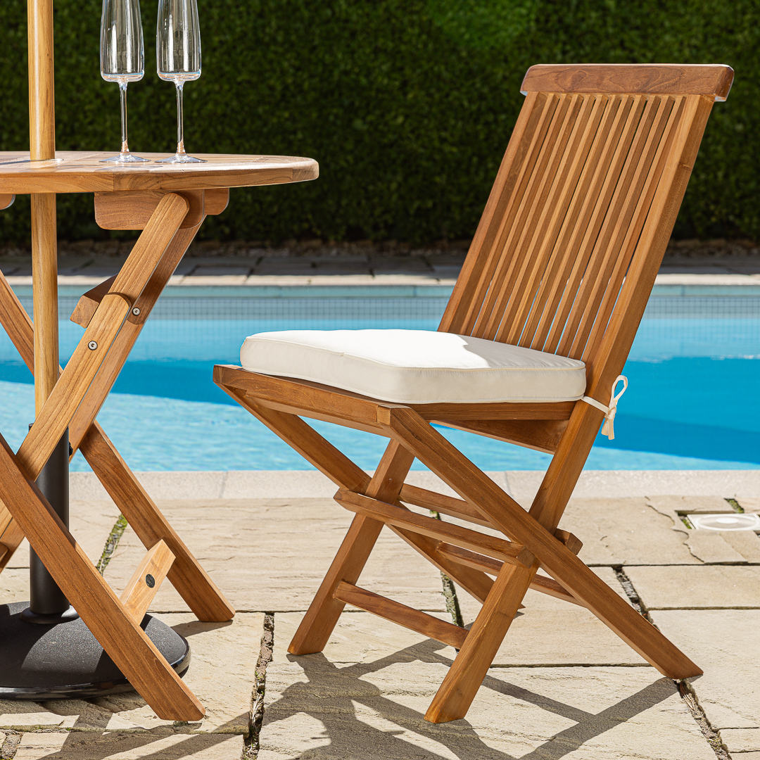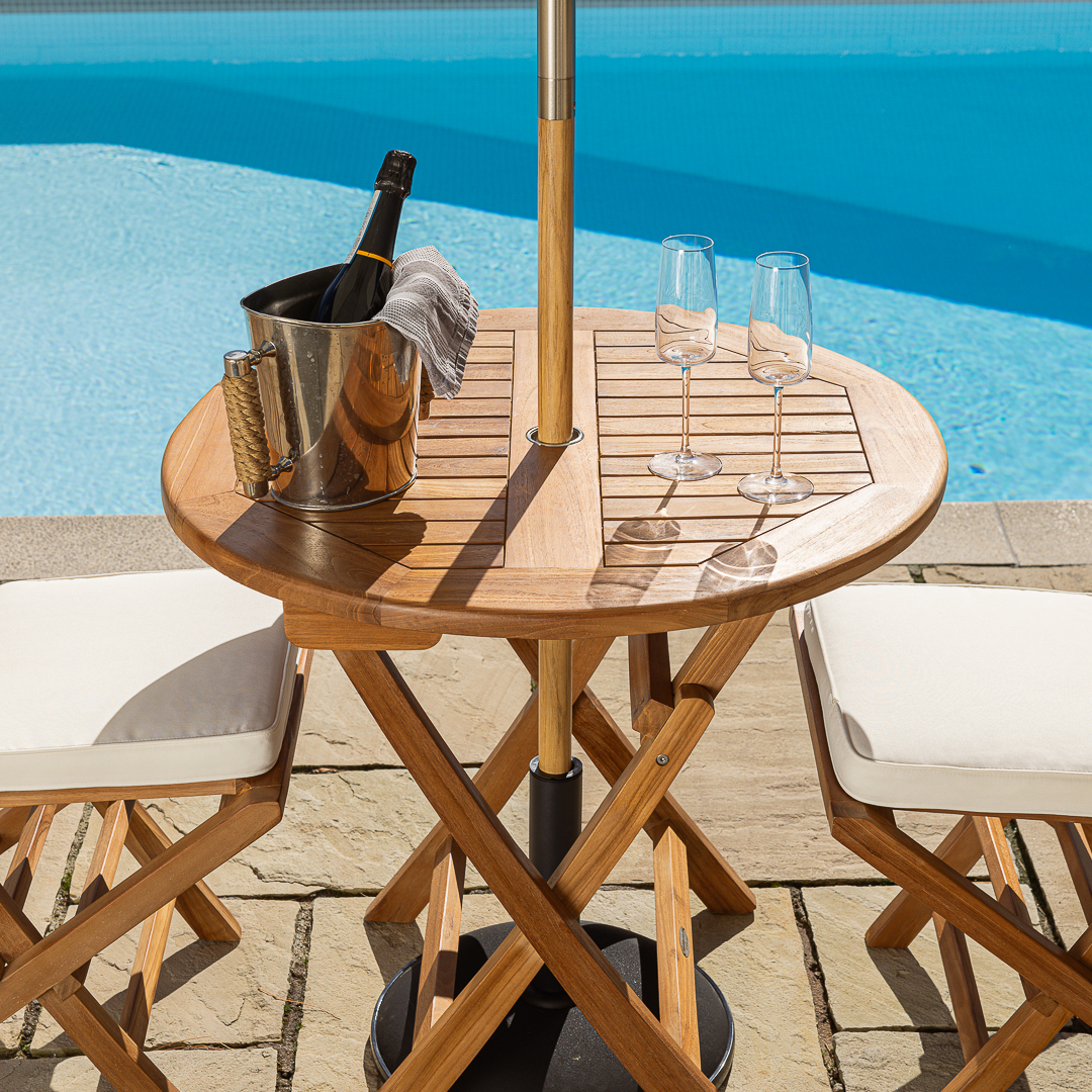 80cm Circular Certified Teak Folding Outdoor Dining Table with 2 Cora Teak Folding Chairs