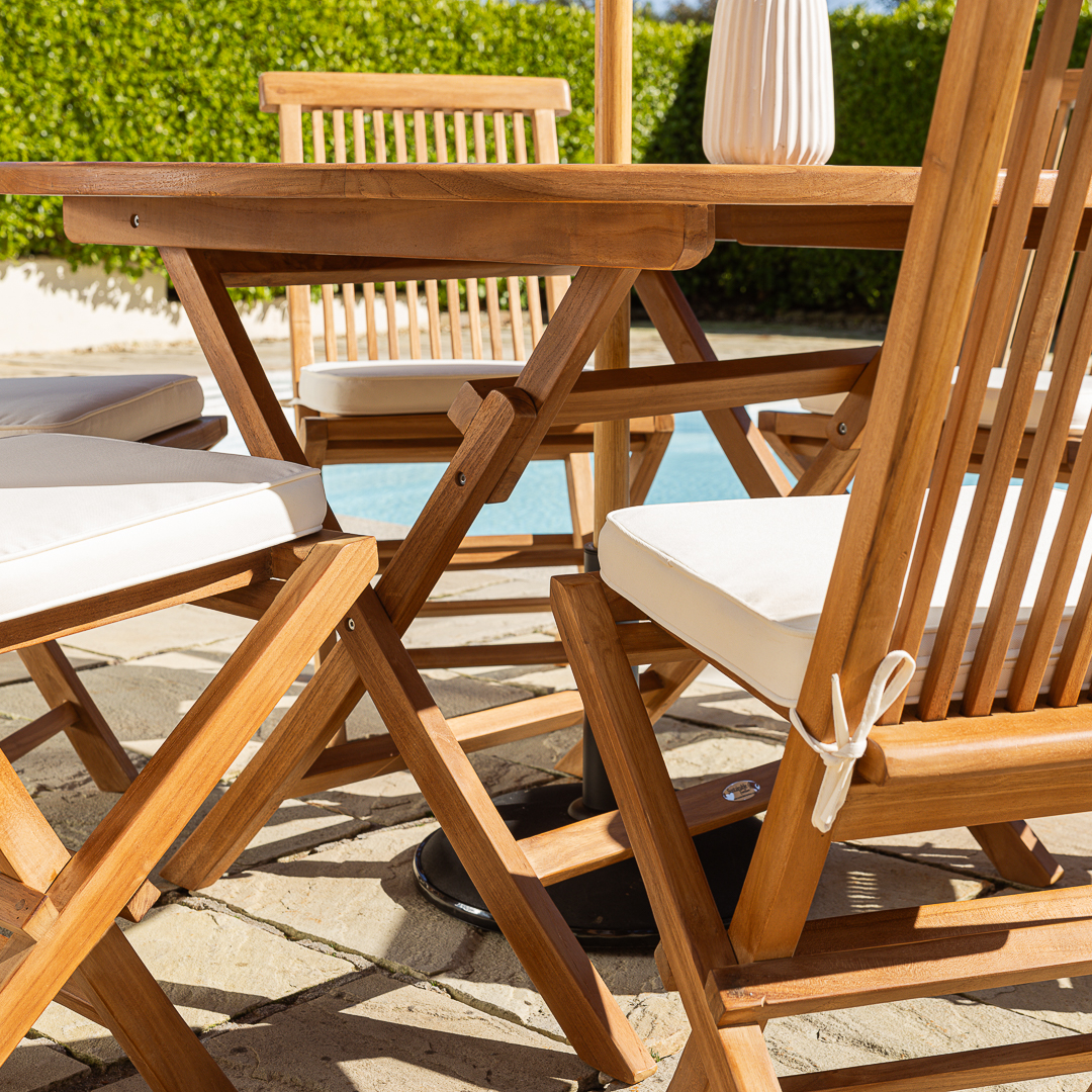 120cm Octagonal Certified Teak Folding Outdoor Dining Table with 4 Cora Folding ChairsIn stock