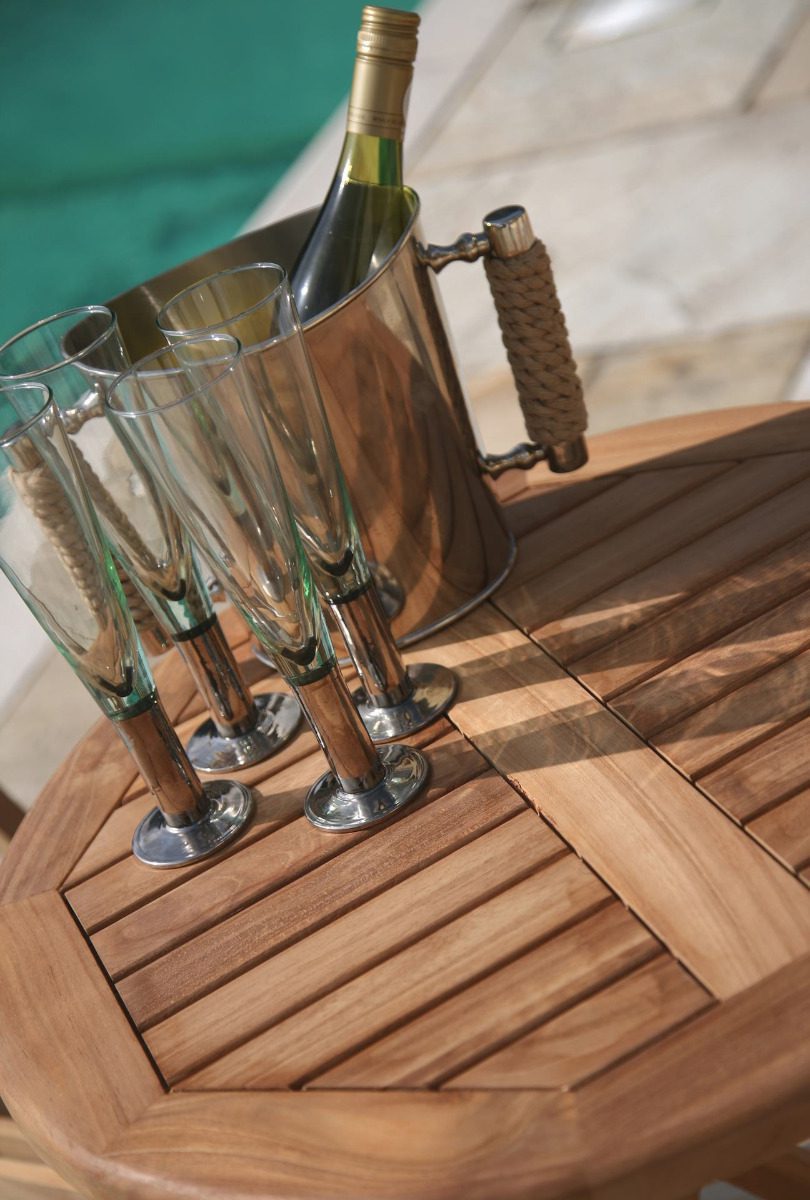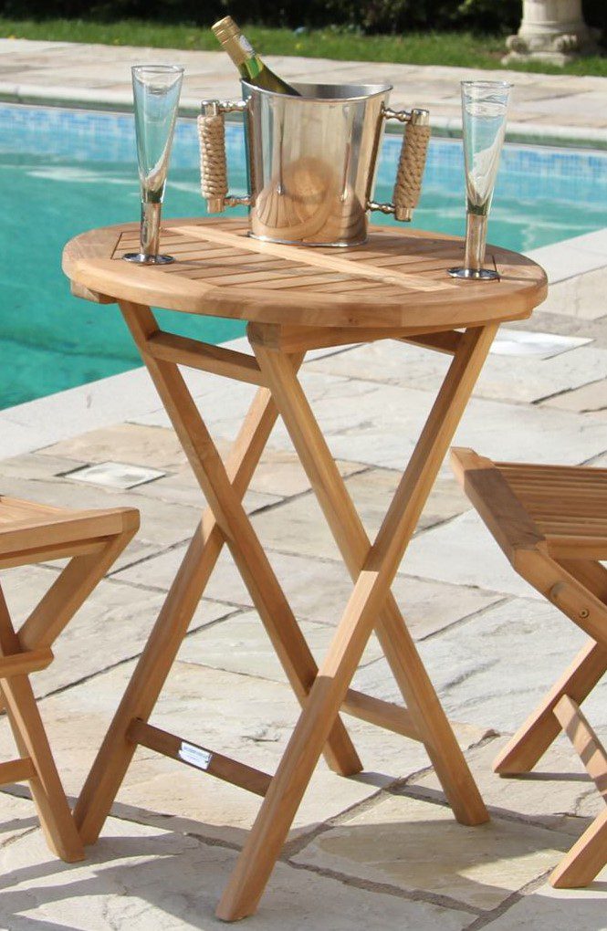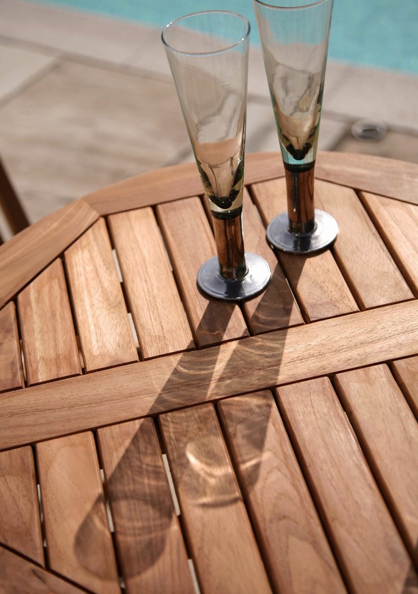 This 60cm folding outdoor table is the perfect staple for outdoor dining, it can be used as a side table to hold afternoon drinks and snacks or for a light lunch with company. The compact and flexible nature of this table makes it ideal for balconies small patio areas and decking. The table folds away for easy storage if space is limited or if you are just using it as an occasional table. If you would like to maintain the furniture’s cosmetic appearance our teak sealer can be applied, which is perfect for brightening up your garden furniture and keeps it looking fresh. Our teak furniture arrives pre-treated but will weather to a charming silvery/grey colour which some people prefer, once the original finish has deteriorated and the teak has weathered, the teak sealer can then be applied. To find out more about our Teak Sealer and how to apply it, please click here. Measurements - Diameter 60cm x Height 75cm