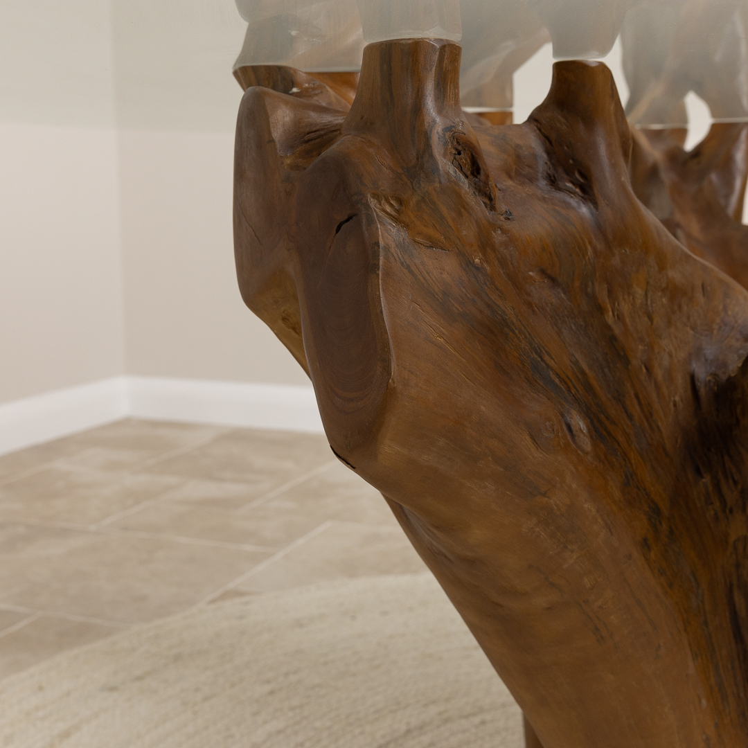 240cm x 120cm Rectangular Reclaimed Teak Root Indoor Dining Table with 10mm Toughened Safety GlassIn stock