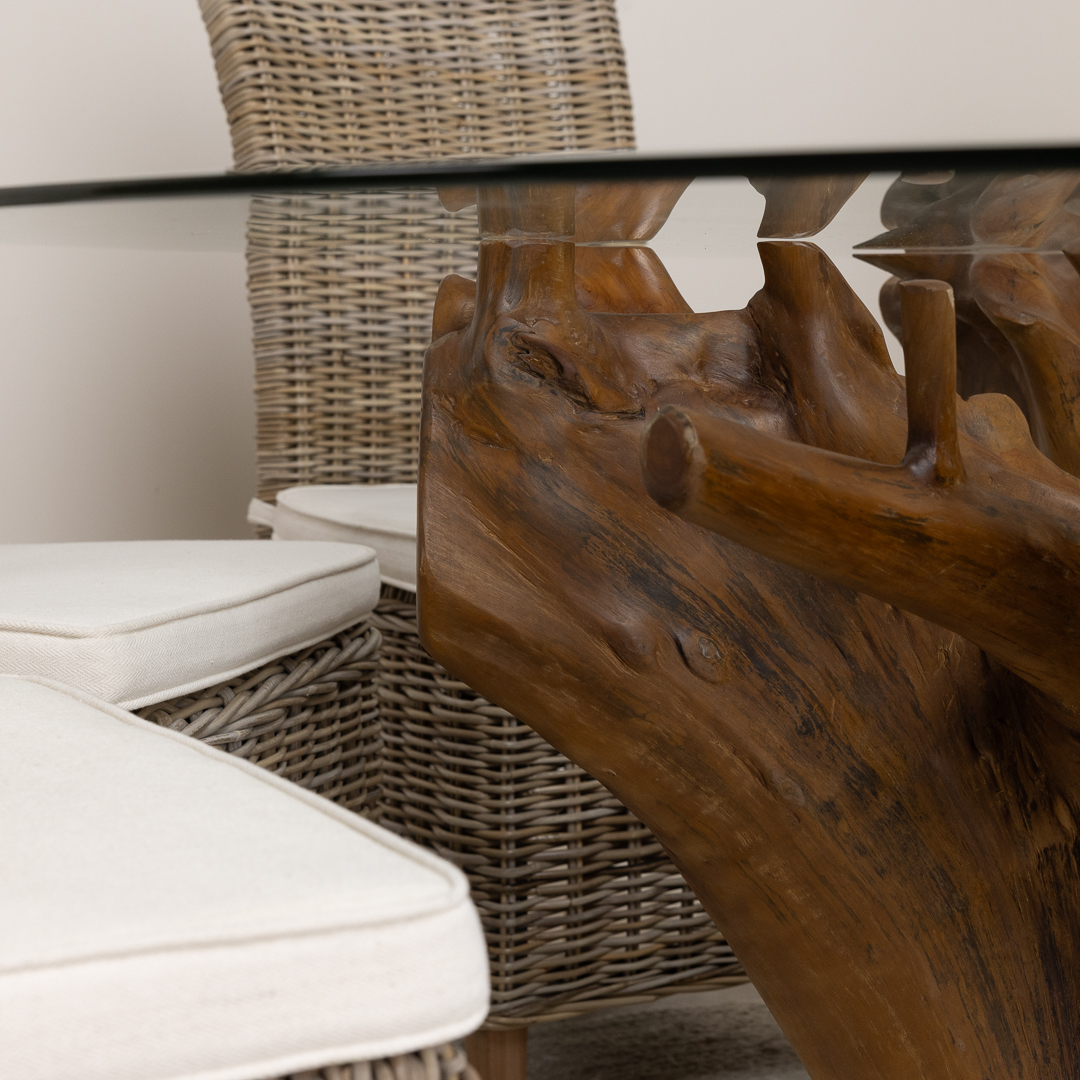180cm x 120cm Rectangular Reclaimed Teak Root Indoor Dining Table with 10mm Toughened Safety GlassIn stock