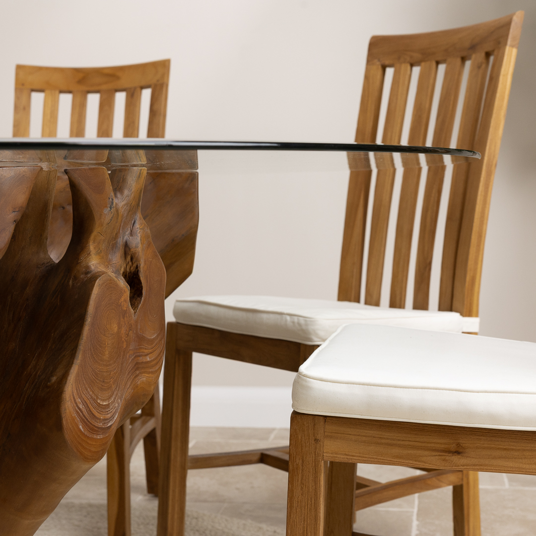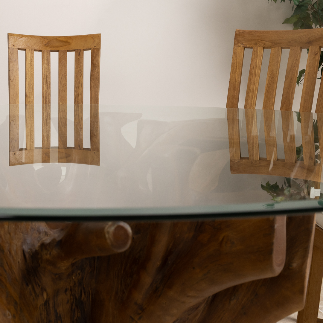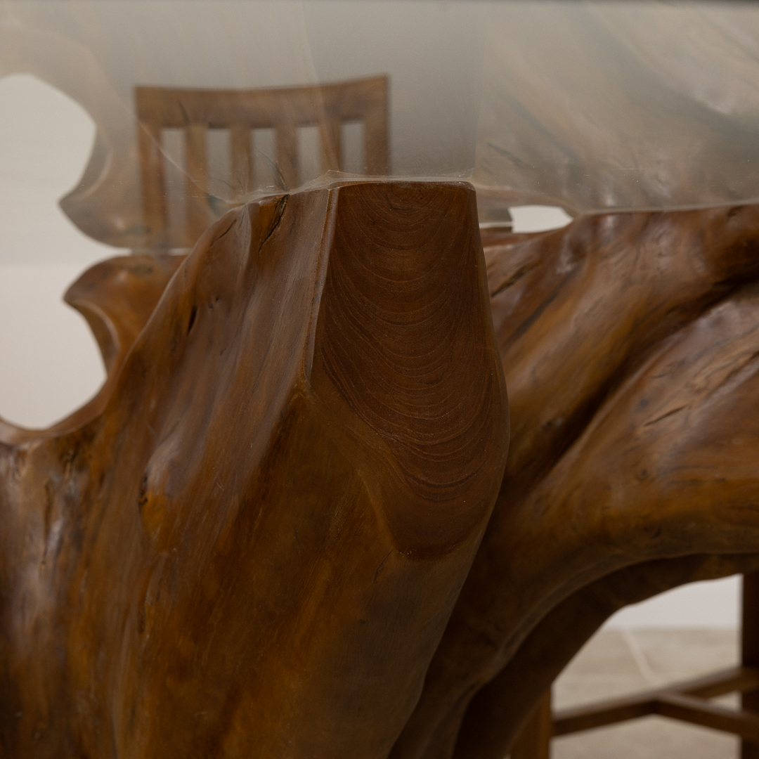 240cm x 120cm Rectangular Reclaimed Teak Root Indoor Dining Table with 10mm Toughened Safety GlassIn stock