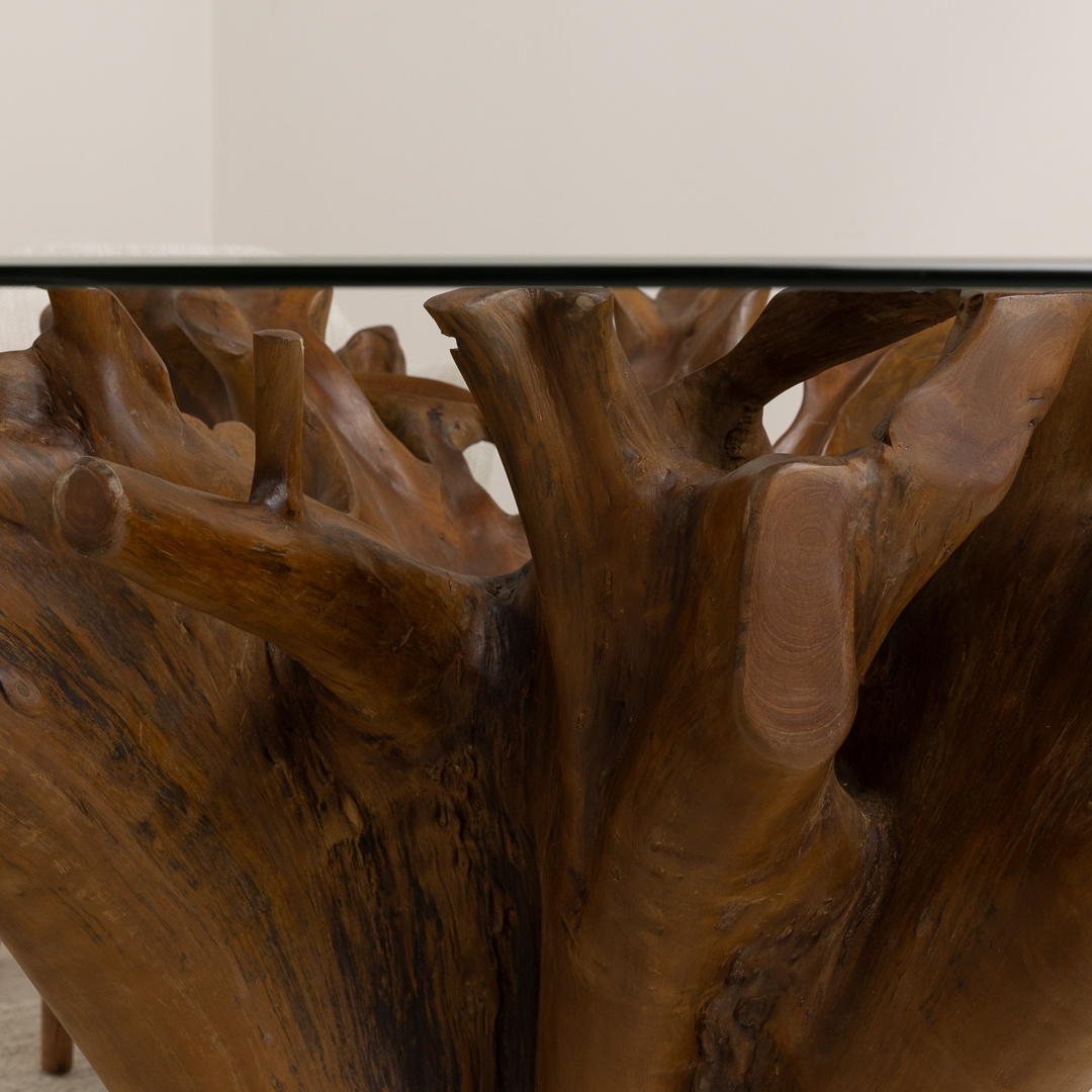 240cm x 120cm Rectangular Reclaimed Teak Root Indoor Dining Table with 10mm Toughened Safety GlassIn stock