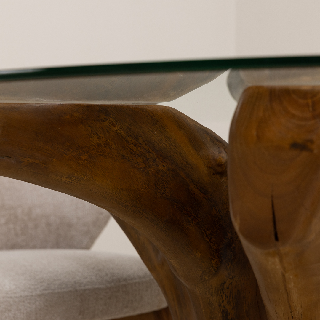 120cm x 80cm Rectangular Reclaimed Teak Root Cross Sectional Coffee Table with 10mm Toughened Safety GlassIn stock