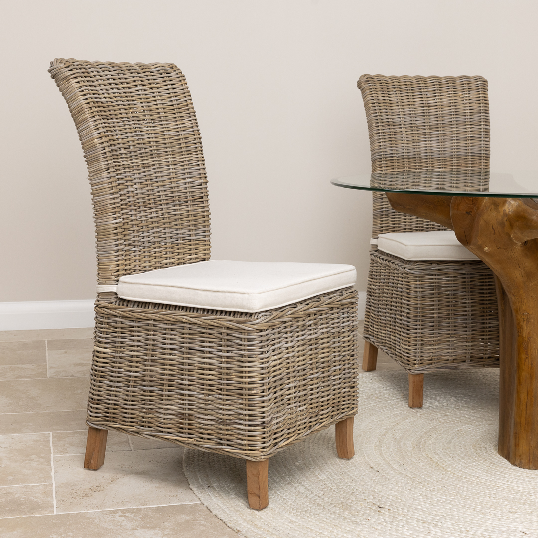 180cm x 120cm Rectangular Reclaimed Teak Root Indoor Dining Table with 4 or 6 Natural Kubu Wicker ChairsIn stock