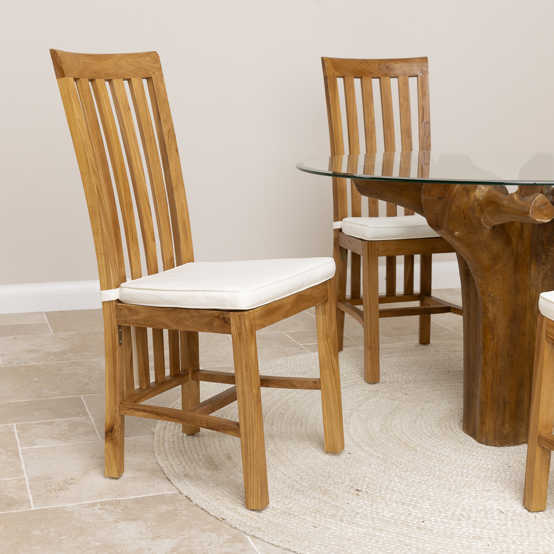 180cm x 120cm Rectangular Teak Root Dining Table with 4 or 6 Upholstered Cove ChairsIn stock