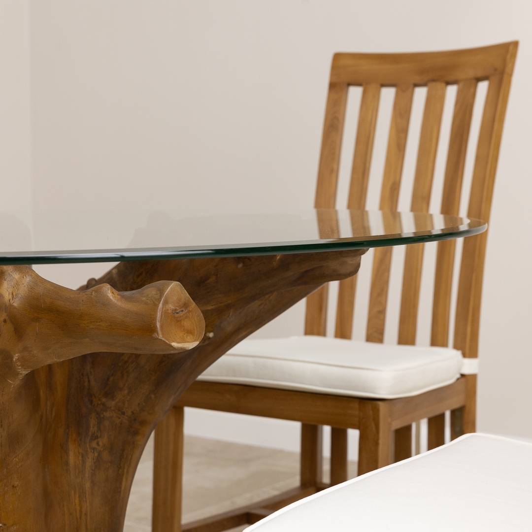 180cm x 120cm Oval Reclaimed Teak Root Indoor Dining Table with 10mm Toughened Safety GlassIn stock