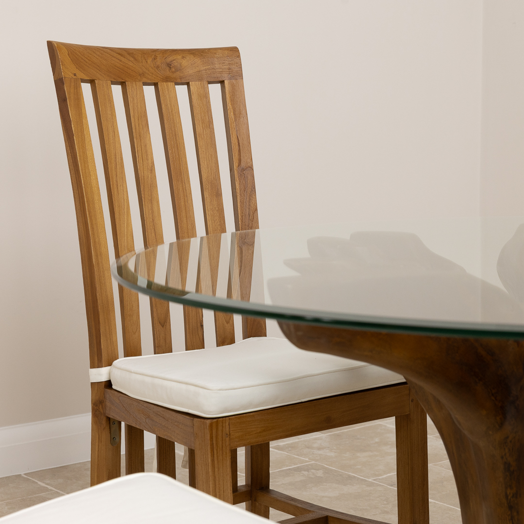 120cm Circular Reclaimed Teak Root Flute Dining Table with 10mm Toughened Safety GlassIn stock